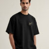 This isn’t just clothing; it’s wearable art. The tee is crafted in a relaxed, modern oversized fit for maximum comfort and a stylish, non-restrictive drape. The deep black canvas sets the perfect stage for the exclusive graphics that define this piece: